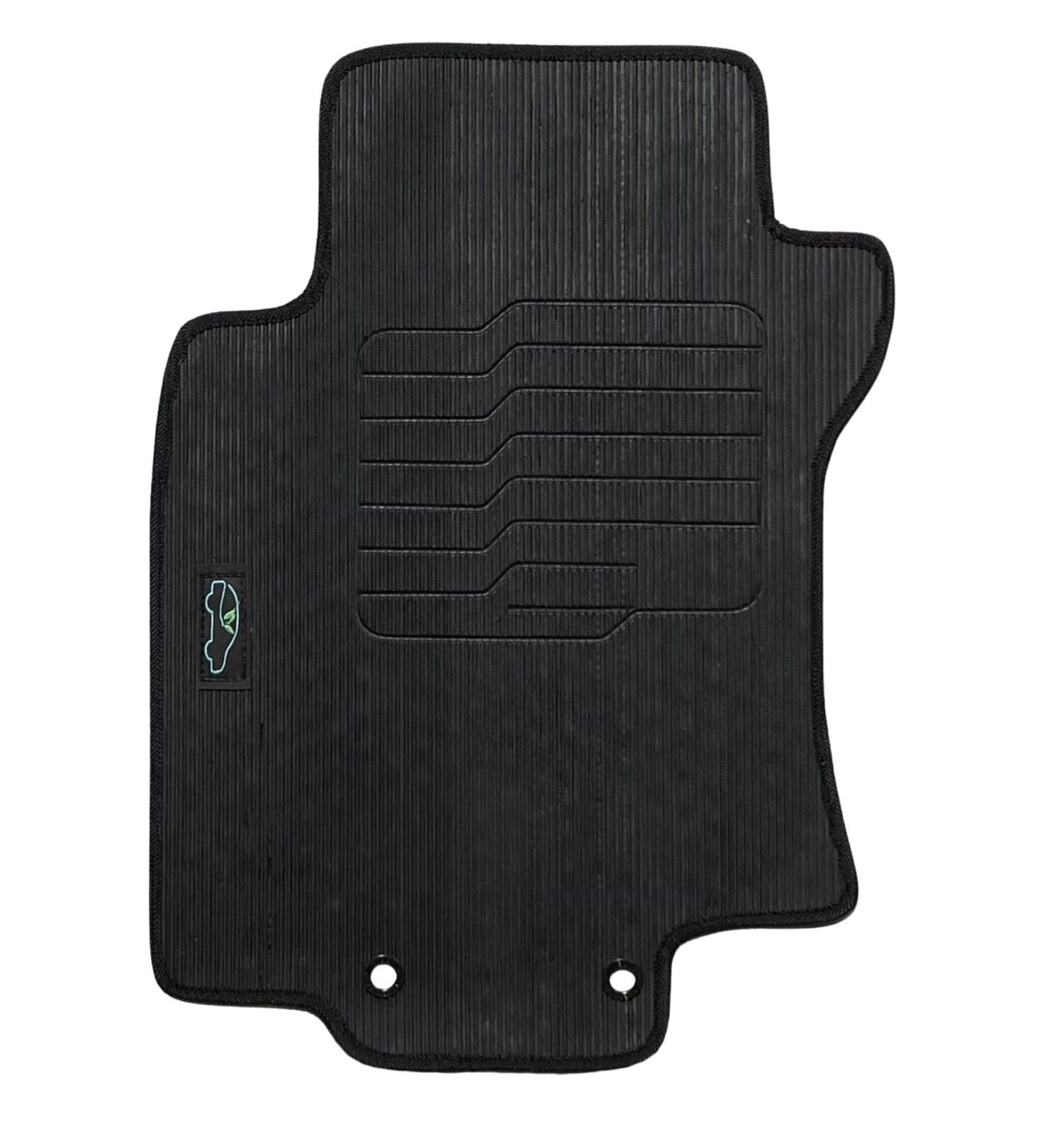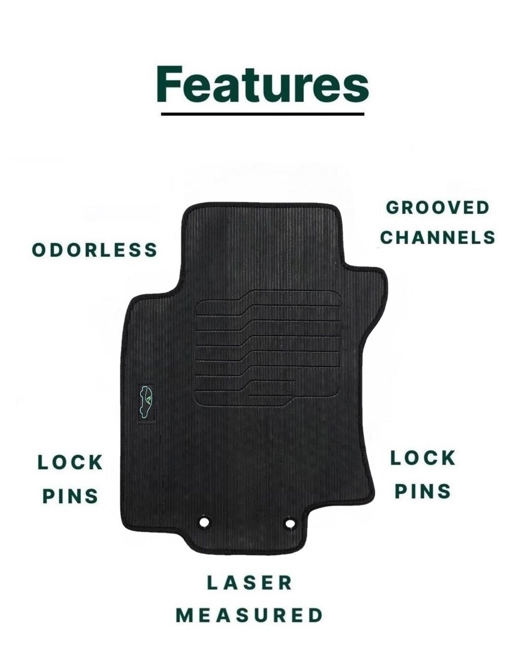 All ecoMats floor mats have Non-Slip Driver Heel Pad that gives your foot an extra grip. All floors have also safety locks that fit the manufacture's lock pins and Velcro tapes to keep your floor mats in place when your car is moving.