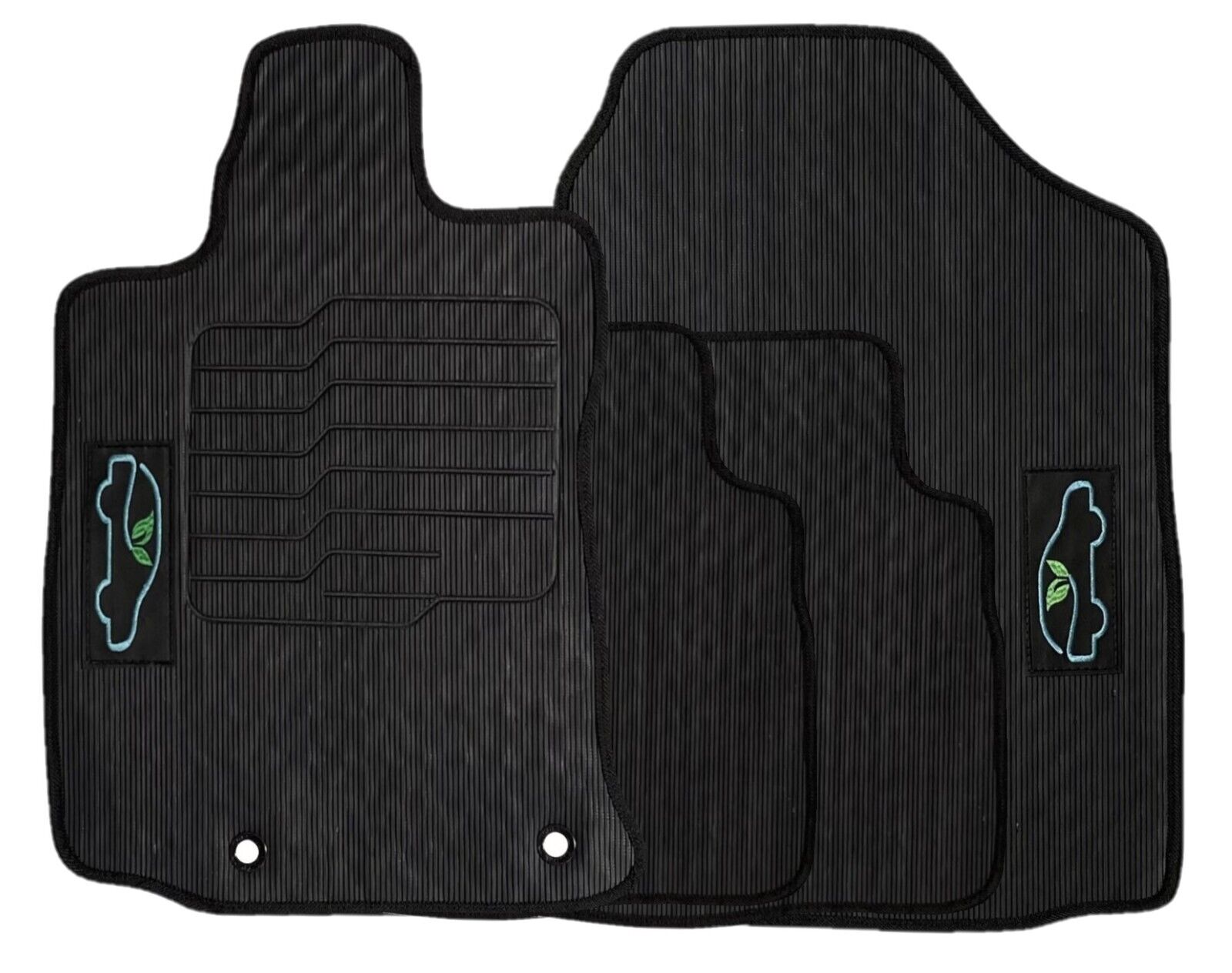 All ecoMats floor mats have Non-Slip Driver Heel Pad that gives your foot an extra grip. All floors have also safety locks that fit the manufacture's lock pins and Velcro tapes to keep your floor mats in place when your car is moving.