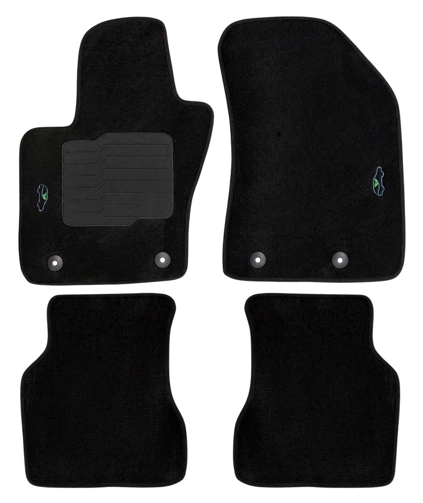 All ecoMats floor mats have Non-Slip Driver Heel Pad that gives your foot an extra grip. All floors have also safety locks that fit the manufacture's lock pins and Velcro tapes to keep your floor mats in place when your car is moving.