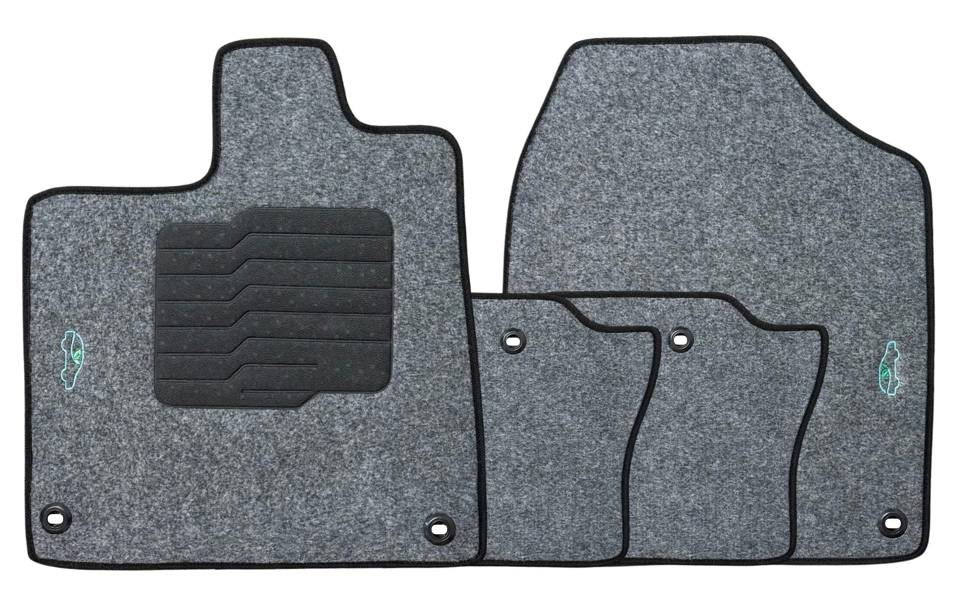 All ecoMats floor mats have Non-Slip Driver Heel Pad that gives your foot an extra grip. All floors have also safety locks that fit the manufacture's lock pins and Velcro tapes to keep your floor mats in place when your car is moving.