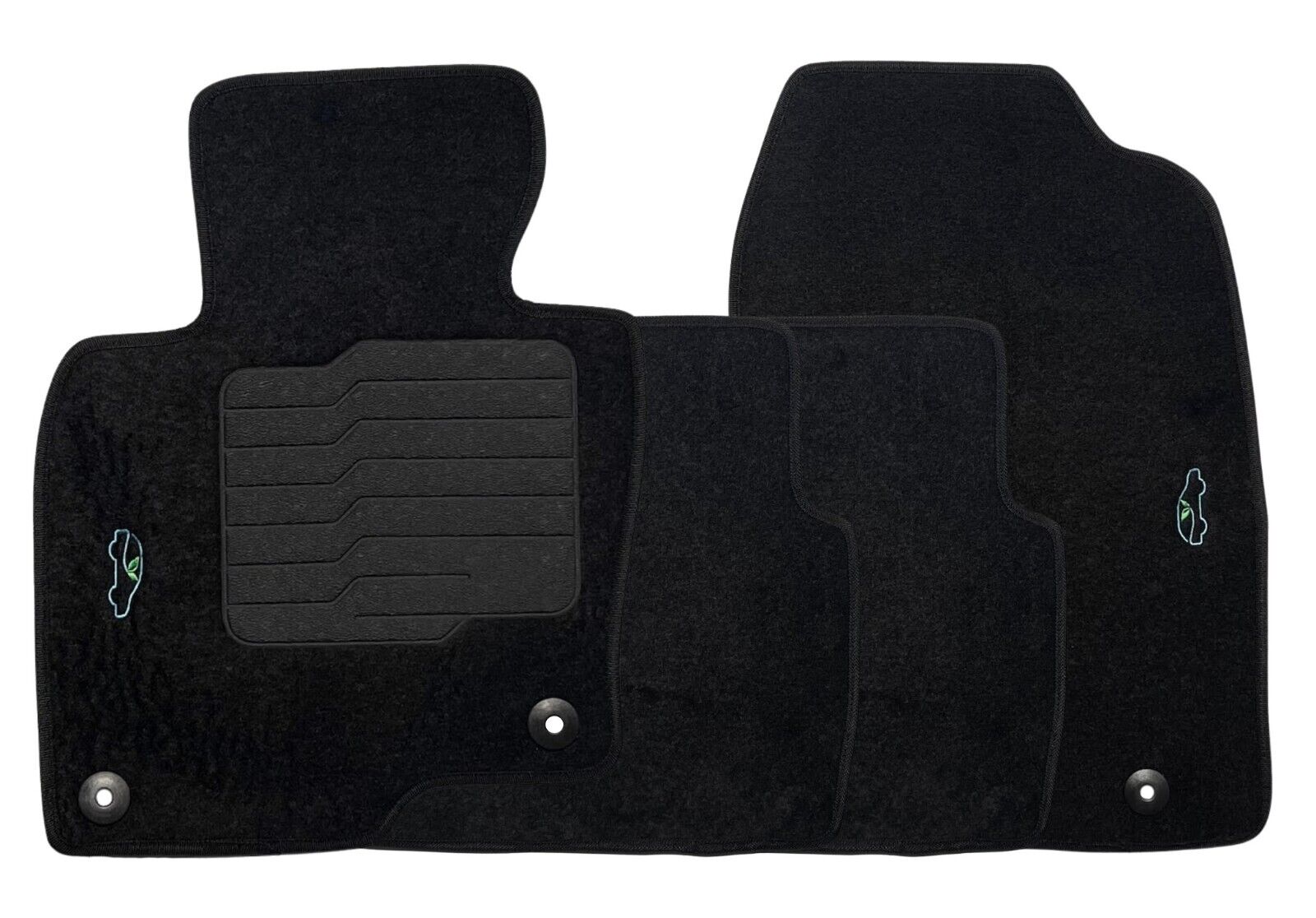 All ecoMats floor mats have Non-Slip Driver Heel Pad that gives your foot an extra grip. All floors have also safety locks that fit the manufacture's lock pins and Velcro tapes to keep your floor mats in place when your car is moving.