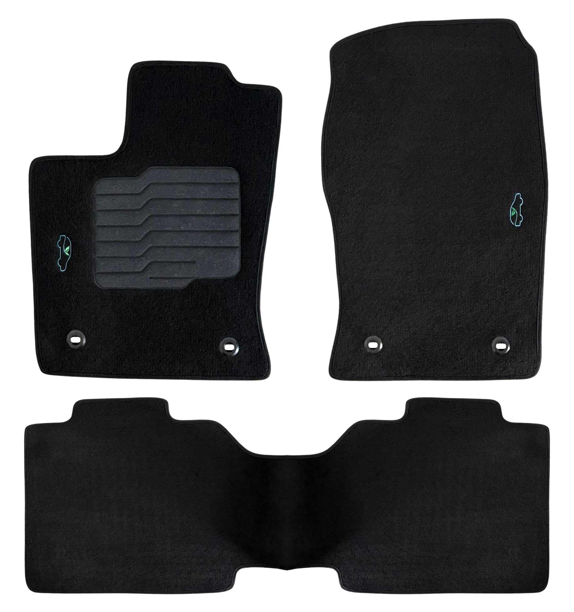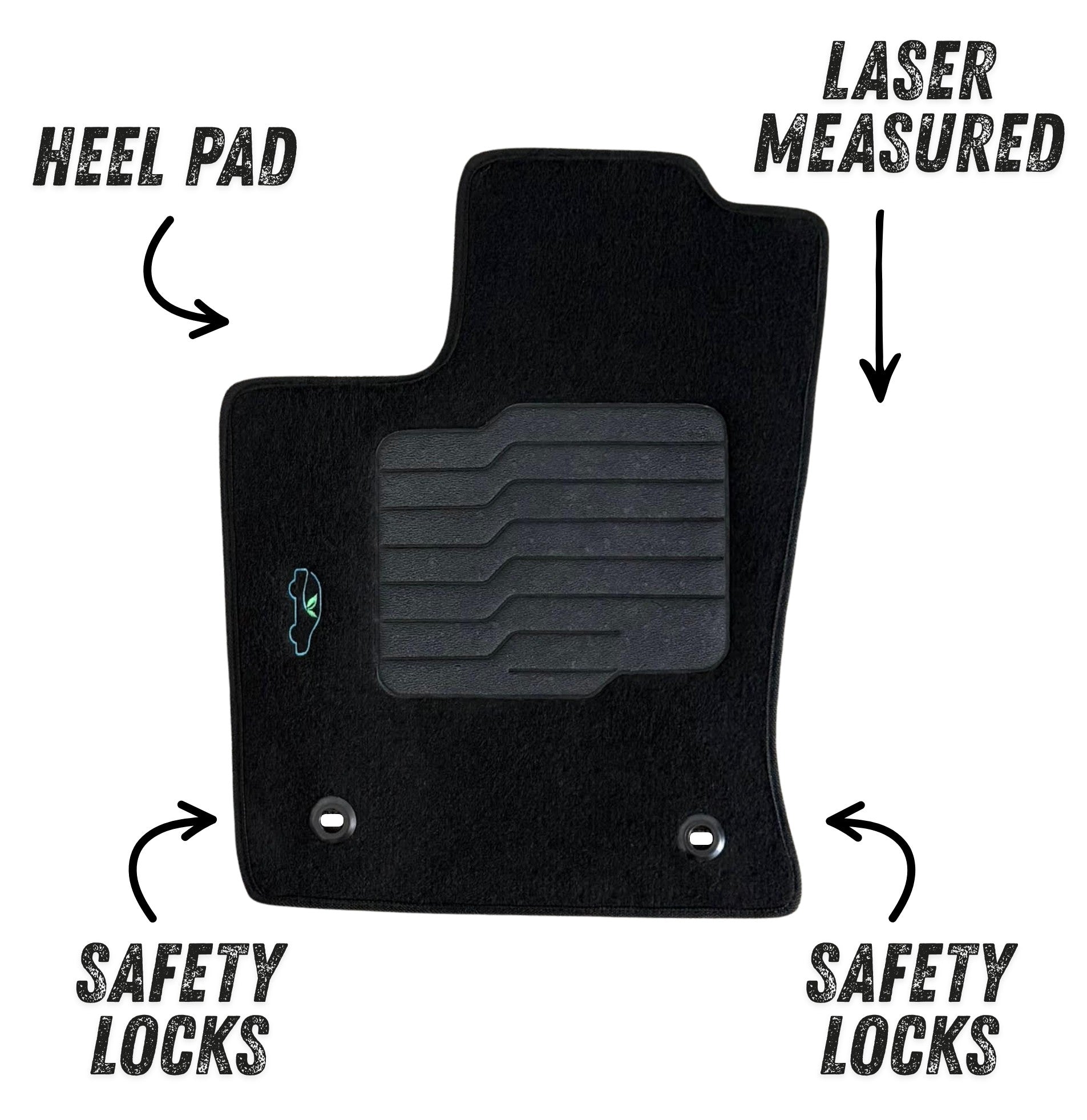 All ecoMats floor mats have Non-Slip Driver Heel Pad that gives your foot an extra grip. All floors mats have also safety locks that fit the manufacture's lock pins and Velcro tapes to keep your floor mats in place when your car is moving.