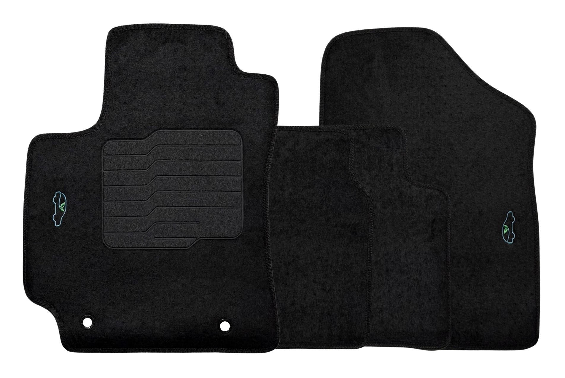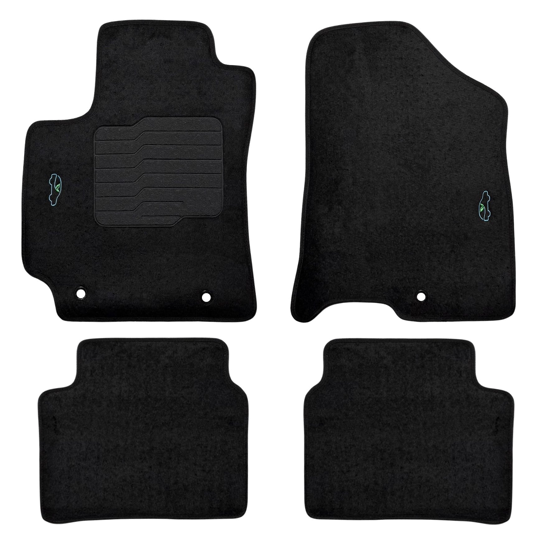 All ecoMats floor mats have Non-Slip Driver Heel Pad that gives your foot an extra grip. All floors mats have also safety locks that fit the manufacture's lock pins and Velcro tapes to keep your floor mats in place when your car is moving.