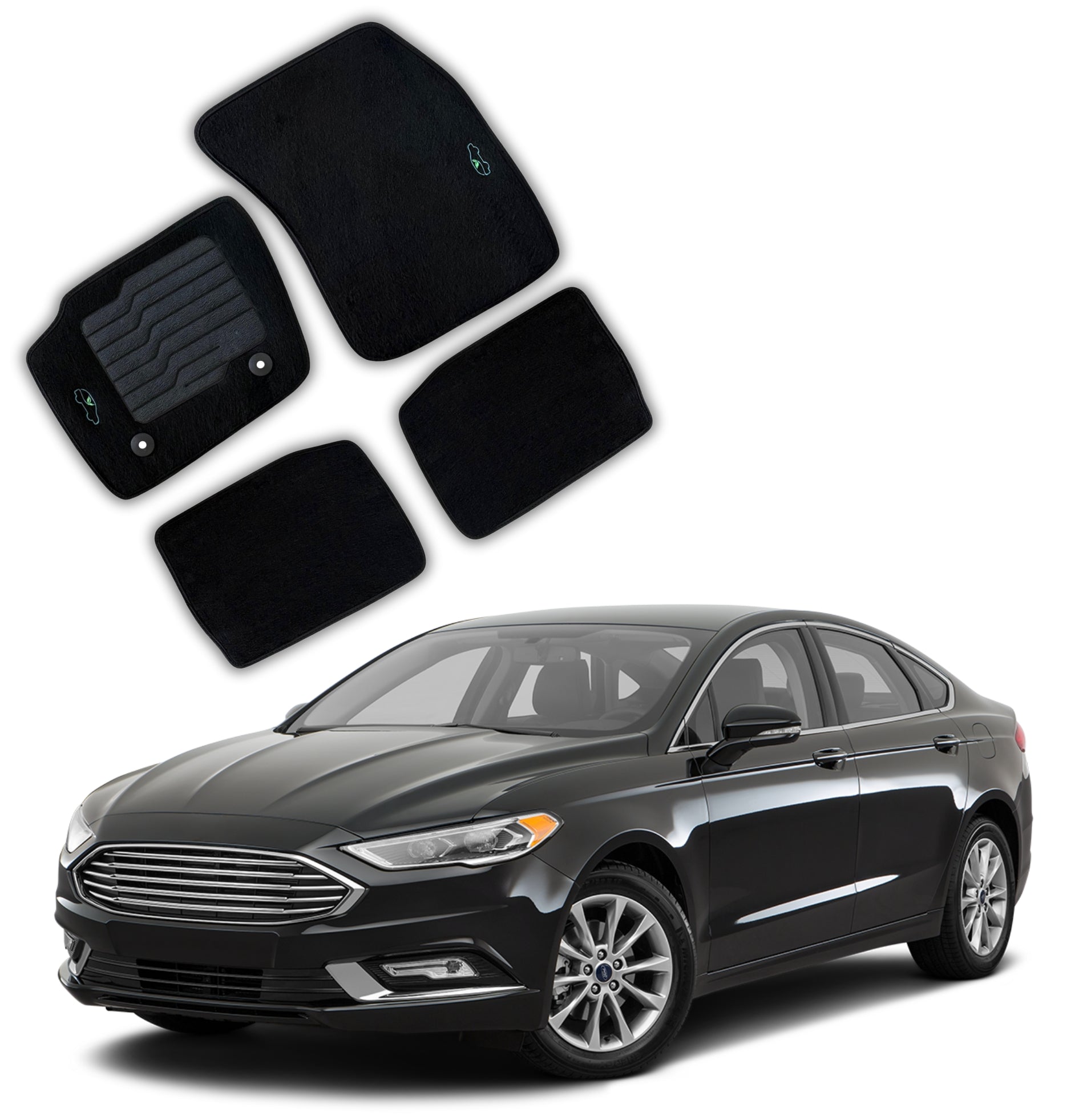 Carpet Floor Mats for 2013 to 2020 Ford Fusion, Front and Rear - Black