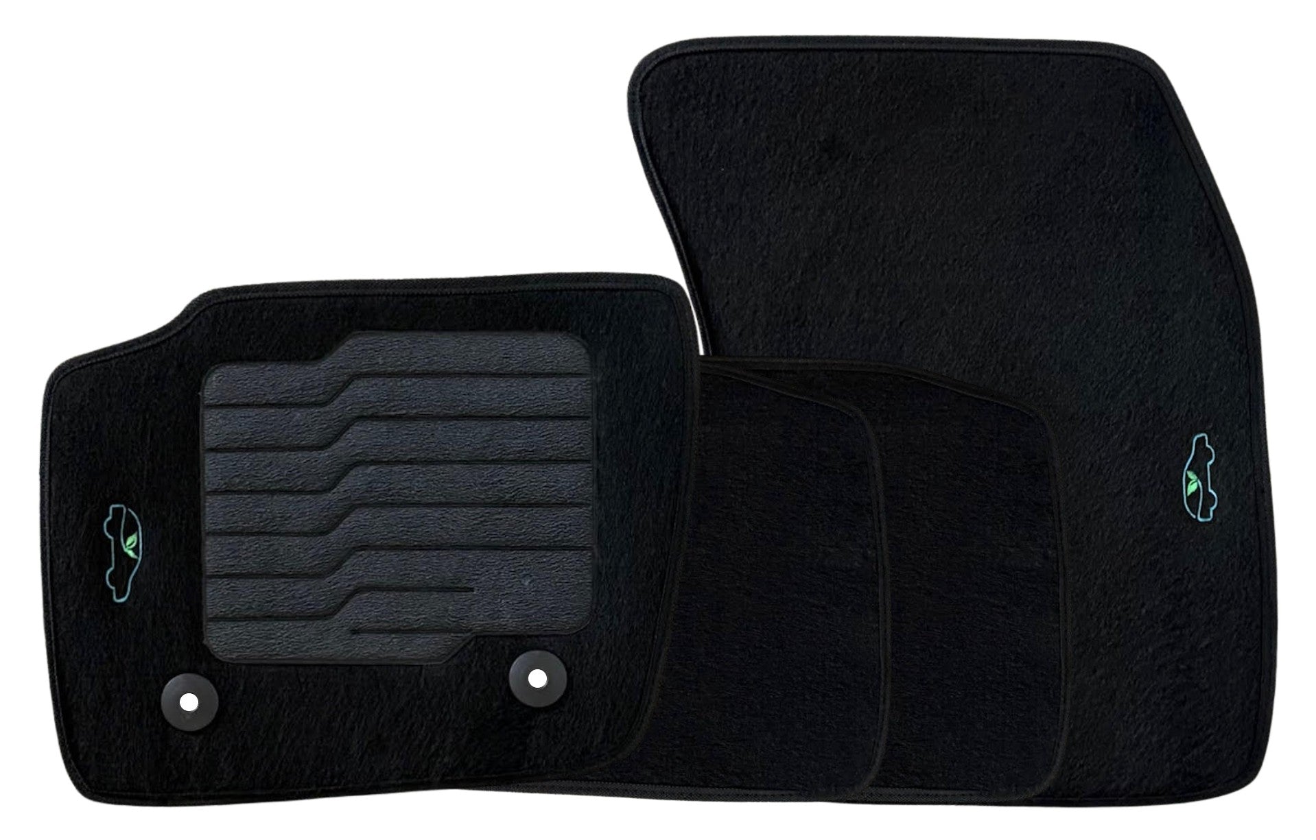 All ecoMats floor mats have Non-Slip Driver Heel Pad that gives your foot an extra grip. All floors have also safety locks that fit the manufacture's lock pins and Velcro tapes to keep your floor mats in place when your car is moving.