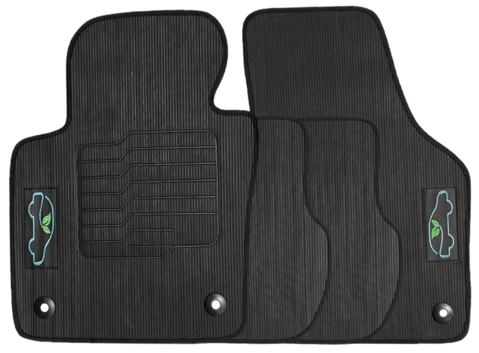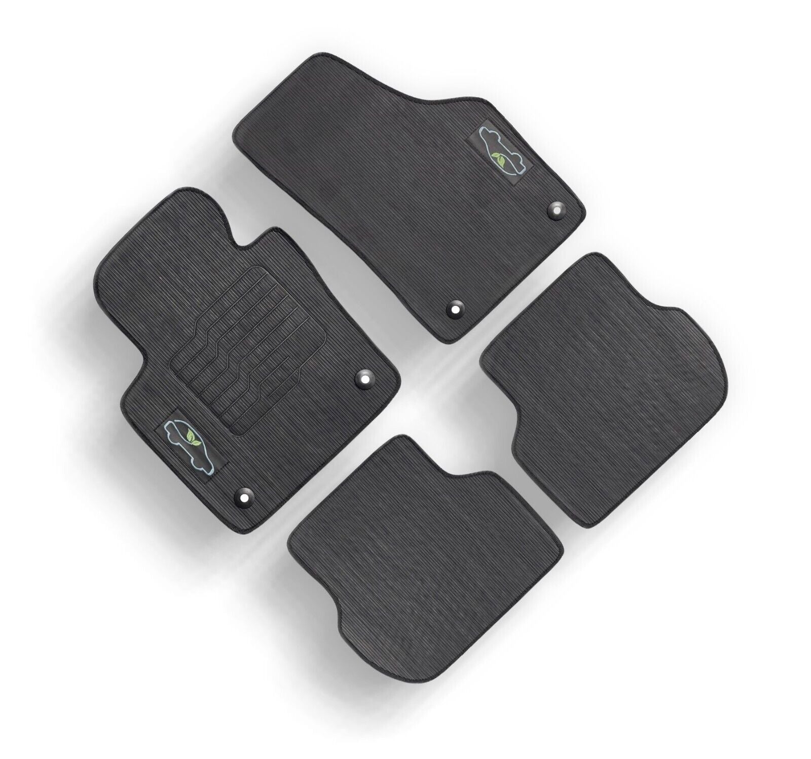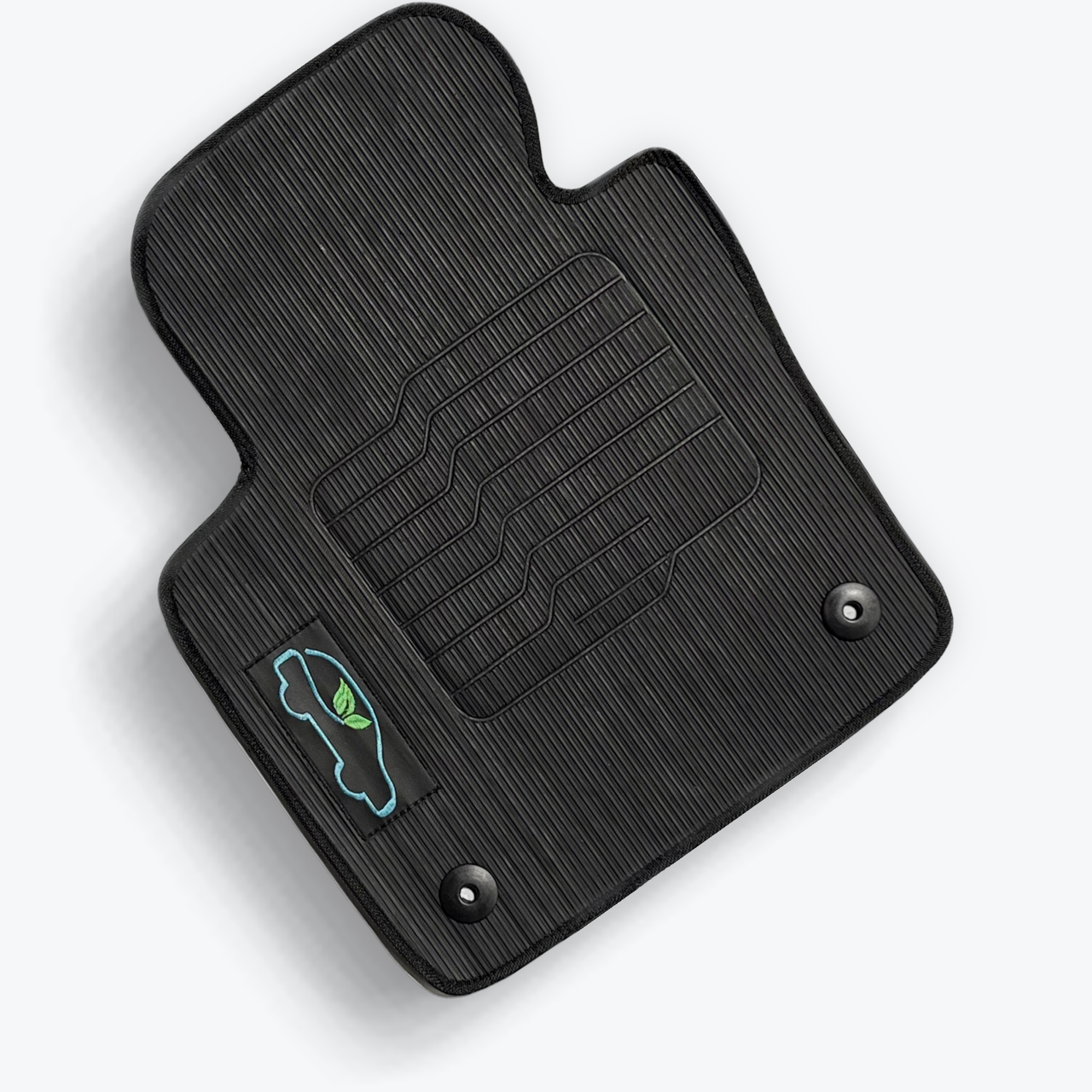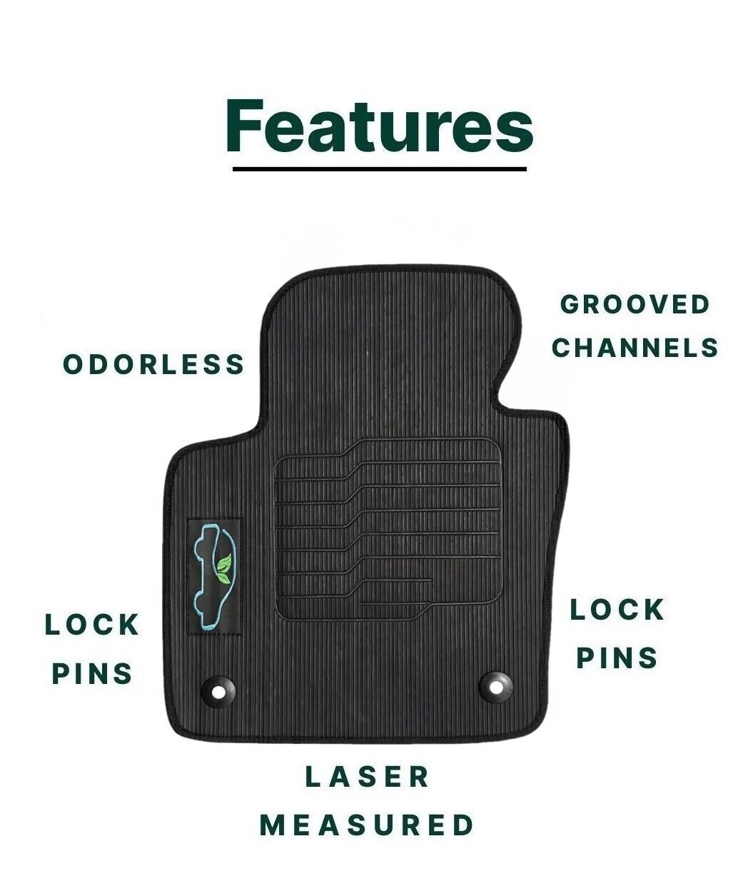 All ecoMats floor mats have Non-Slip Driver Heel Pad that gives your foot an extra grip. All floors have also safety locks that fit the manufacture's lock pins and Velcro tapes to keep your floor mats in place when your car is moving.