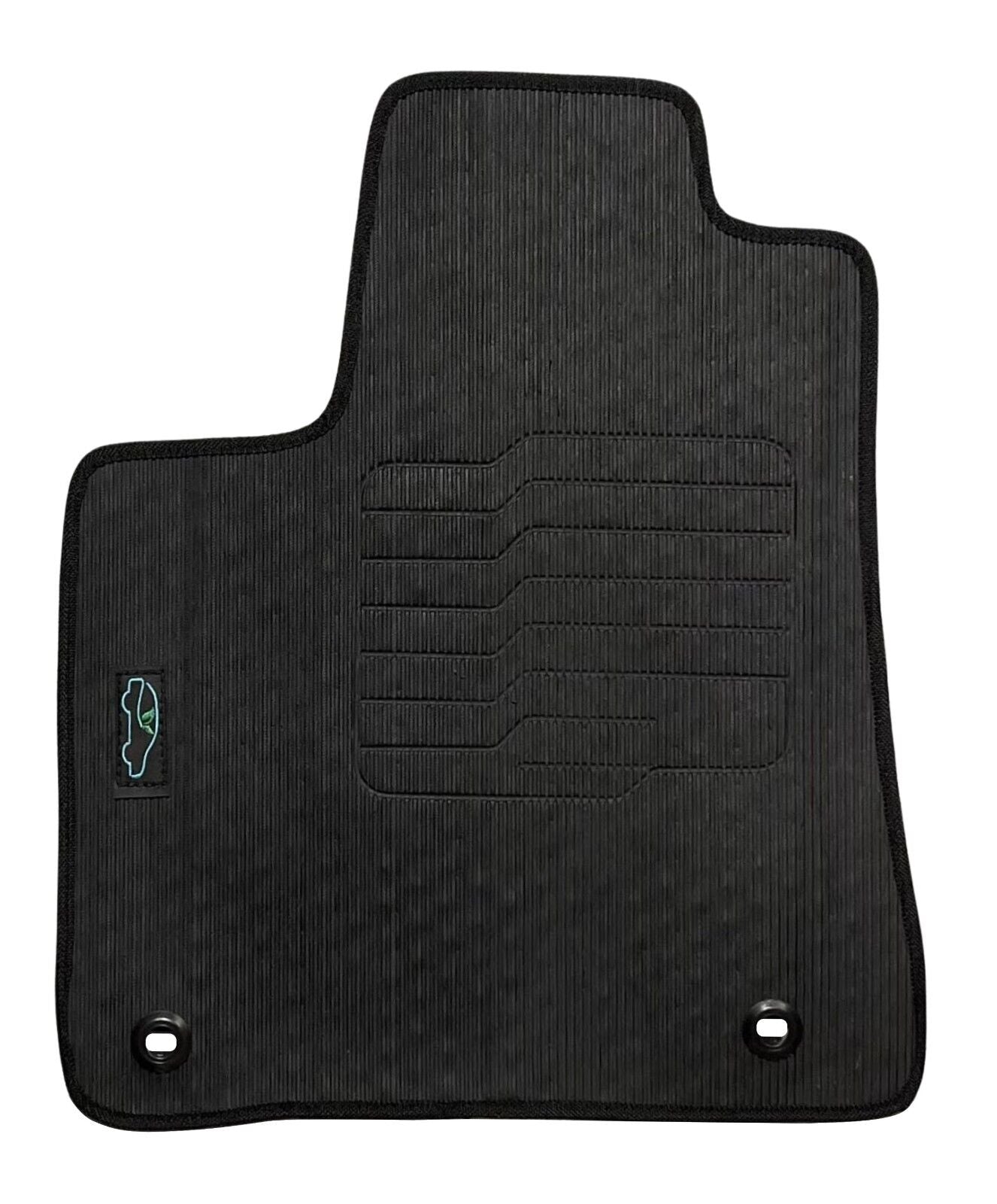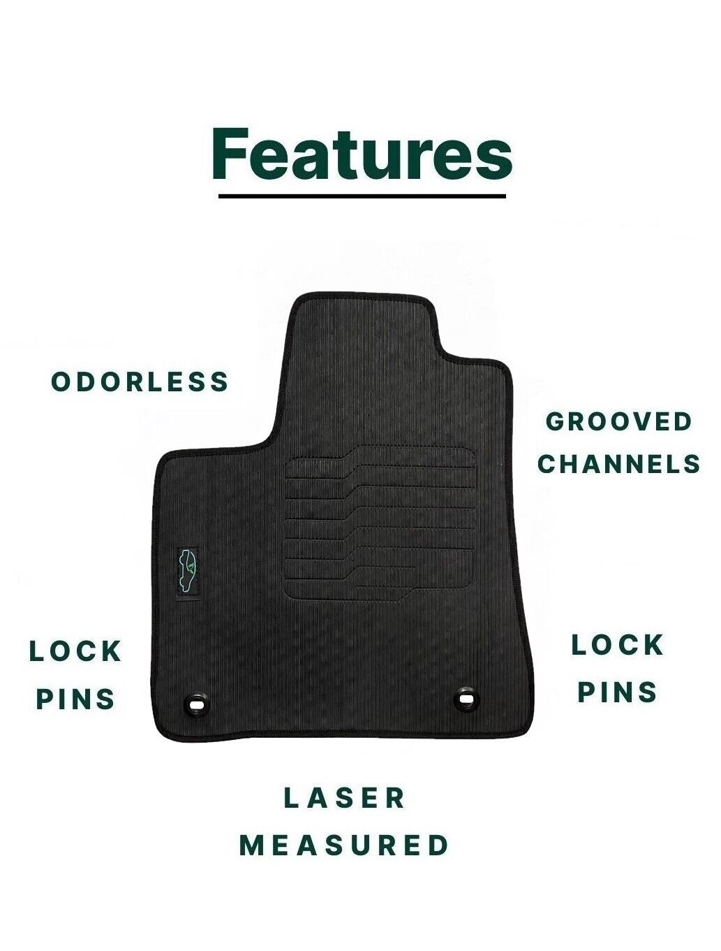 All ecoMats floor mats have Non-Slip Driver Heel Pad that gives your foot an extra grip. All floors have also safety locks that fit the manufacture's lock pins and Velcro tapes to keep your floor mats in place when your car is moving.