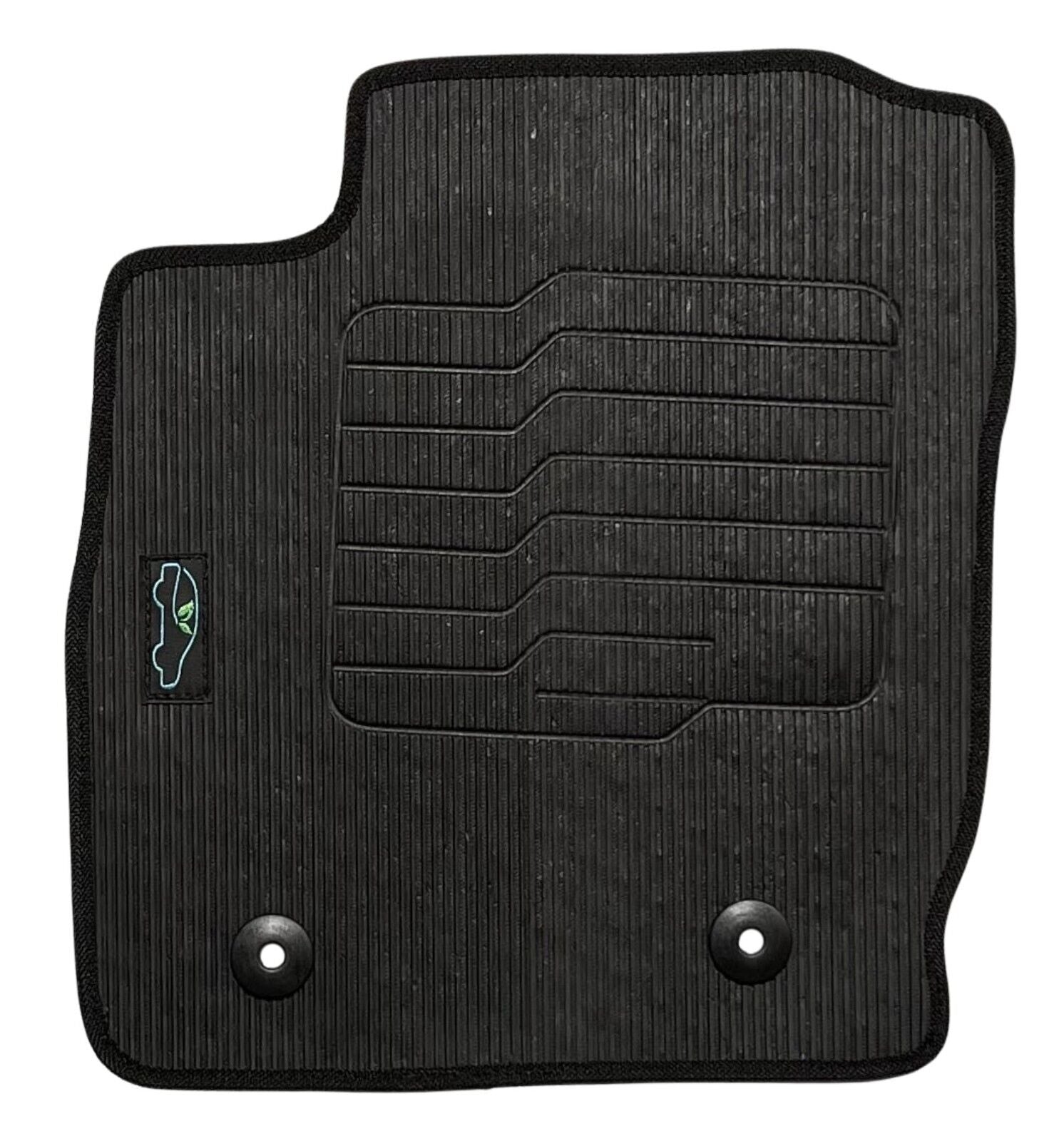 All ecoMats floor mats have Non-Slip Driver Heel Pad that gives your foot an extra grip. All floors have also safety locks that fit the manufacture's lock pins and Velcro tapes to keep your floor mats in place when your car is moving.
