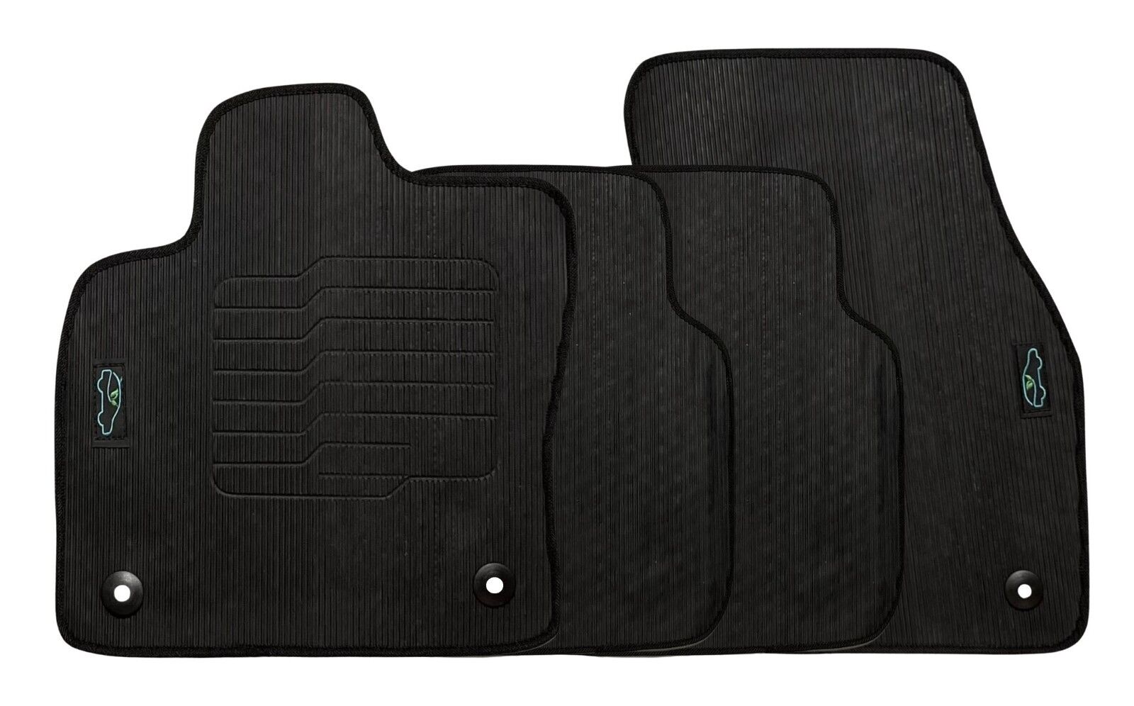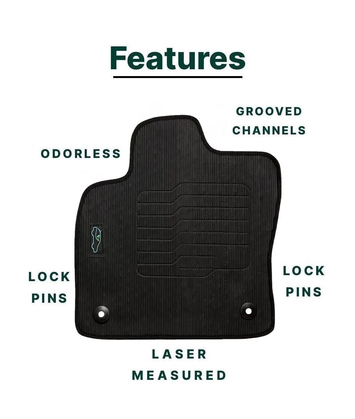 All ecoMats floor mats have Non-Slip Driver Heel Pad that gives your foot an extra grip. All floors have also safety locks that fit the manufacture's lock pins and Velcro tapes to keep your floor mats in place when your car is moving.