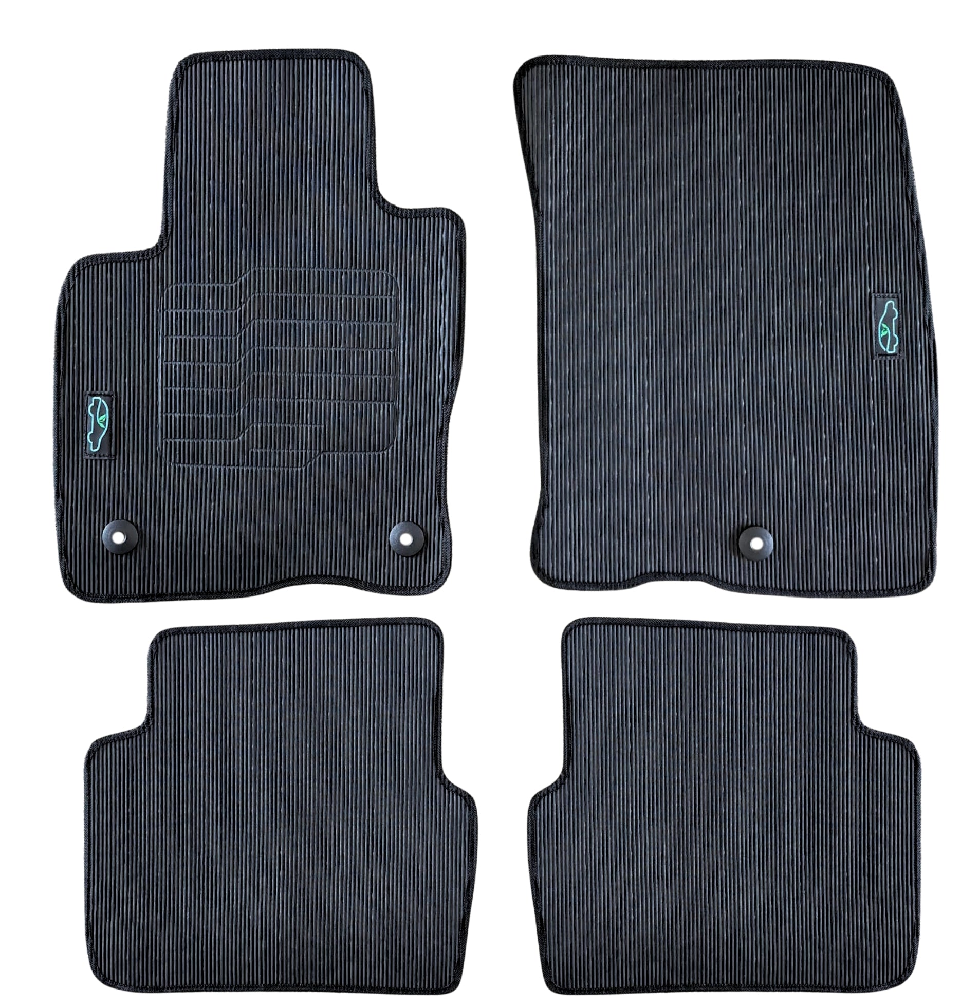 All ecoMats floor mats have Non-Slip Driver Heel Pad that gives your foot an extra grip. All floors have also safety locks that fit the manufacture's lock pins and Velcro tapes to keep your floor mats in place when your car is moving.
