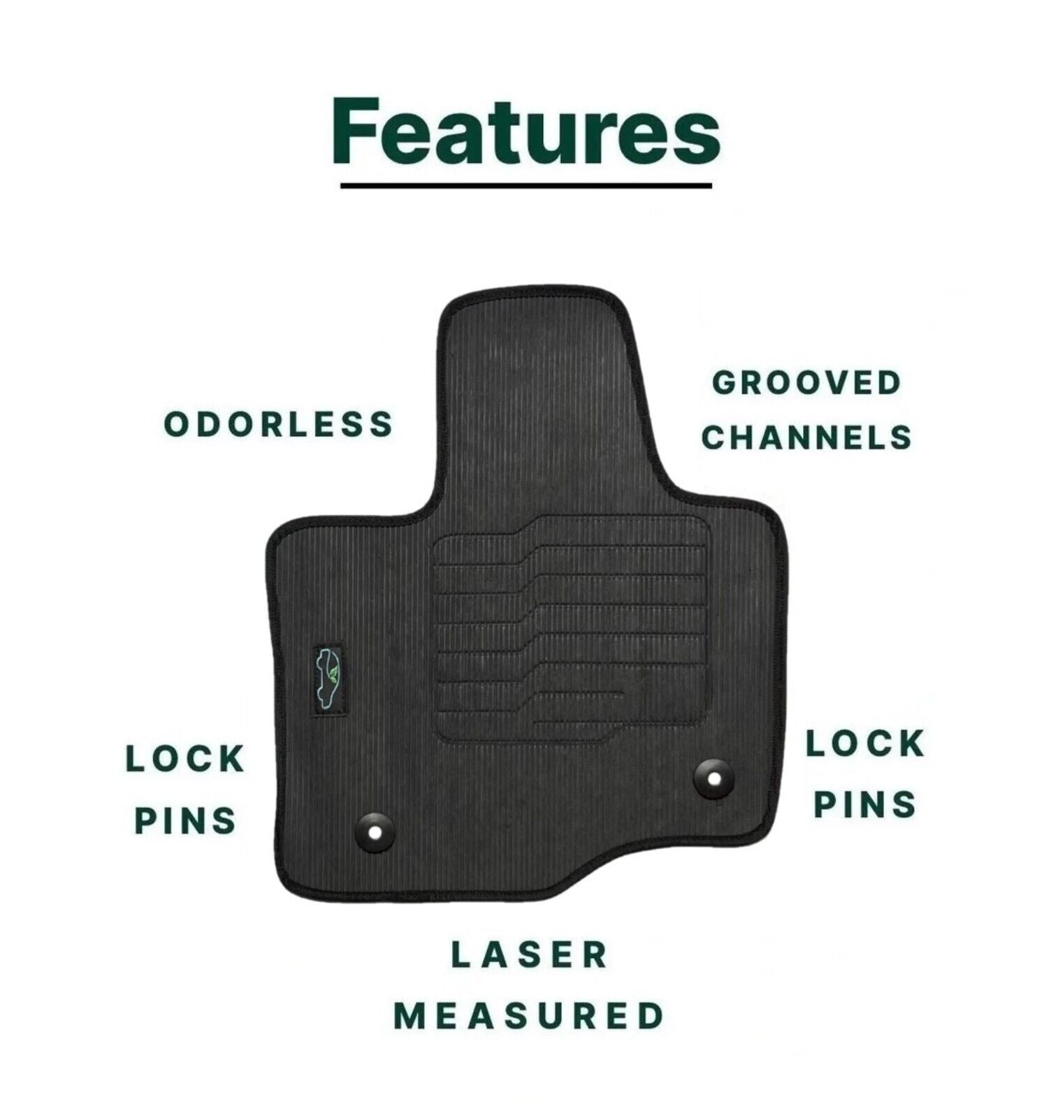 All ecoMats floor mats have Non-Slip Driver Heel Pad that gives your foot an extra grip. All floors have also safety locks that fit the manufacture's lock pins and Velcro tapes to keep your floor mats in place when your car is moving.
